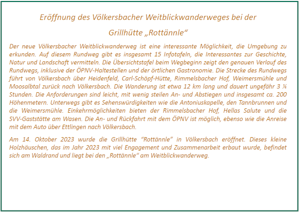 Das Wegekreuz in winterlicher Landschaft ist eines der 16 Kreuze auf Völkersbacher Gemarkung und vielen noch durch die Flurprozessionen an Christi Himmelfahrt bekannt. Wunderschöne Landschaftsfotos zeigen den idyllisch gelegenen Rimmelsbacher Hof, den Blick über den „Friedhofsbuckel“ zum Mahlberg im Frühjahr und das traumhafte Moosalbtal im herbstlichen Nebel.